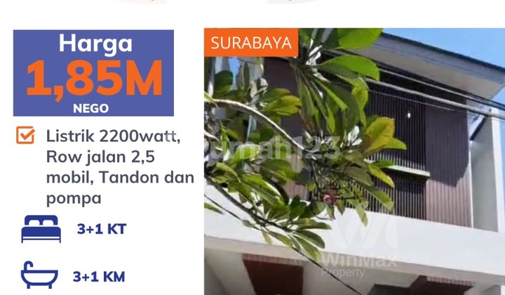 DIJUAL RUMAH Lokasi VILLA KALIJUDAN --> BANGUNAN 2 LANTAI LT 100 m2 --> 5 X 20 Lb 160 m2 3+1 KT 3+1 KM * listrik 2200 watt * tandon + pompa * row jalan 2.5 mobil Hadap TIMUR Surat SHM Harga : 1.85 m nego Hub inge winmax 08155301xxxx