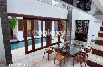 osz25-0007 JUAL RUMAH MODERN TROPIS HIGH SPEC FURNIS MEWAH PAKUWON CITY Luas Tanah 450m² ( 15x30 ) Luas Bangunan ±760 m² 2 Lantai Kamar Tidur 4+1 Kamar Mandi 4+1+1 (powder room) Dapur Kering, Dapur Basah Carport 3 PLN 7.700, PDAM Taman Belakang Kolam berendam Akses ART terpisah Hadap Utara ROW Jalan 4 mobil Sertifikat SHM Harga 17 M Nego Note: ✓ SPESIFIKASI BANGUNAN - PONDASI : Tiang Pancang 22 meter - KONSTRUKSI ATAP : Baja WF200 - SANITARY : Toto - Cor dek K300 - LANTAI Lantai 1 : Marmer Travertine Italy Lantai 2 : Granite Tile 60x120 Carport : Batu Alam Andesit - PINTU : Kusen & Daun Pintu solid Merbau Grade A - JENDELA : Kusen alumunium finish good, Daun jendela outdoor tempered glass ✓ ELECTRONIK: - AC Daikin - Pompa bawah hitachi - Pompa atas hitachi - Filter air - Fitting saklar & stop kontak Schneider Zencelo Bronze