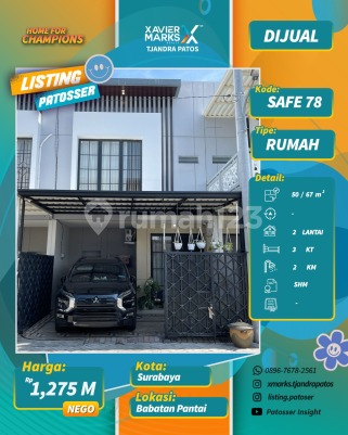 TERMURAH DI AREA BABATAN PANTAI FULLY FURNISH 1M-AN LT 5x10 (50) LB 67 KT 3 KM 2 Listrik 4400watt Fully Furnish SHM Harga 1,275M More Info : SAFE ESTATE - 0819222xxxx Link Whatsapp : ******** Part of XMarks Patos PAKUWON CITY MALL Surabaya Timur dekat Jalan Raya MERR, Rungkut, Kenjeran, Arif Rahman Hakim, Kertajaya, Dharmahusada, Kalijudan, Manyar, Rumah Sakit Premier, RS Haji, RS Unair, RS Mitra Keluarga, RS Gotong Royong, Galaxy Mall, Pakuwon City Mall, Transmart Rungkut, Kampus ITS, UNAIR, Sekolah Kristen Petra, Sekolah Gloria Galaxy, Pasar Keputran Timur, Jembatan Kenjeran, Taman Surabaya, Harmoni Keputih