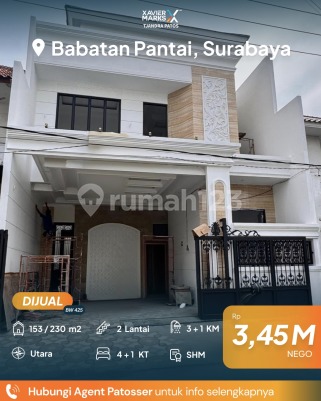 DIJUAL RUMAH SEMI KLASIK BARU GRESS DI BABATAN PANTAI MINIMALIS 2 LANTAI CIAMIIK 5 menit ke Galaxy mall, UNAIR, Pakuwon City LT 153 m³ (9x17) LB 230 m² KT 4+1 KM 3+1 (2 KM dalam + 1 KM Luar) Carport 2 mobil Row jalan 3 Mobil Atap genteng cor Kusen Aluminium alexindo Full Granit 80 x 80 Sanitary full toto (Closet Duduk) Hadap Utara PDAM PLN 5500 SHM Bonus: 4 Ac 1 Pk Tandon atas stanles 1500 liter Tandon bawah 2 m3 Water heater 30 lt ( 3 unit ) Kitchen set Korden Taman Harga 3,450 M Bisa NEGO Hub: Brigitta Wong 0811309xxxx Xmarks Tjandra Patos Surabaya Timur dekat Jalan Raya MERR, Rungkut, Kenjeran, Arif Rahman Hakim, Kertajaya, Dharmahusada, Kalijudan, Manyar, Rumah Sakit Premier, RS Haji, RS Unair, RS Mitra Keluarga, RS Gotong Royong, Galaxy Mall, Pakuwon City Mall, Transmart Rungkut, Kampus ITS, UNAIR, Sekolah Kristen Petra, Sekolah Gloria Galaxy, Pasar Keputran Timur, Jembatan Kenjeran, Taman Surabaya, Harmoni Keputih