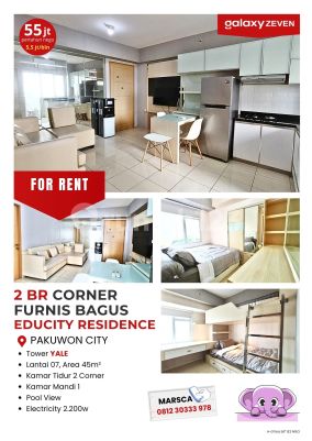 SEWA ANEKA 2 BEDROOM FURNIS APARTEMEN EDUCITY Pilihan Lantai 1- 31 Luas Bangunan 38 - 46,5m² Kamar Mandi 1 PLN 13002200xxxx View / pemandangan: Pool View, City View, Mountain View, dll Harga Mulai : v 38 juta per tahun v 4,2 juta per bulan FASILITAS: - Private Lobby - Free Akses to Swimmimg Pool - Free Akses to Gym/Fitness - Tempat Bermain Anak (free) - Jogging Track (free) - Free 1 Parking Lot - Laundry Shops - Convenience Stores/mini marts - Depot, Pujasera - Apotik LOKASI & JARAK 50m - Sekolah Gloria 260m - Sekolah Xin Zhong 350m - Pakuwon City Mall 700m - Universitas Widya Mandala Pakuwon City 1 km - Sekolah Cita Hati 2,7 km - ITS (Institut Teknologi Surabaya) 5 km - RS Mitra Keluarga Kenjeran 5,3 km - Galaxy Mall 6 km - Unair Kampus C 8,1 km - Unair Kampus B 20 km - Juanda Airport