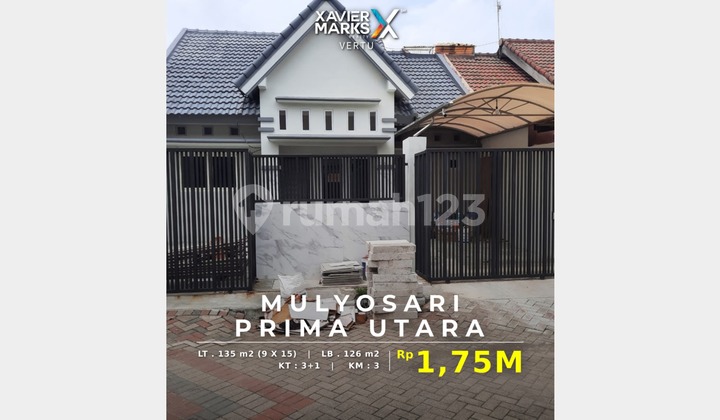 DIJUAL RUMAH MULYOSARI PRIMA UTARA Lt = 9x 15 LB = 126 m² 1 lantai. Ktidur = 3 + 1 pbt. Kmandi = 1 umum,1 kmandi dalam, dan 1 kmandi pbt. Ada akses samping..masuk rmh. Carport 2 mobil. Ada dapur dan tempat cuci baju. Lebar jalan muka rumah.. 2 mobil lebih. Shm, pln 2.200, pdam, Hadap selatan. Harga 1,750 m nego. SUDAH RENOVASI BAGUSSS...