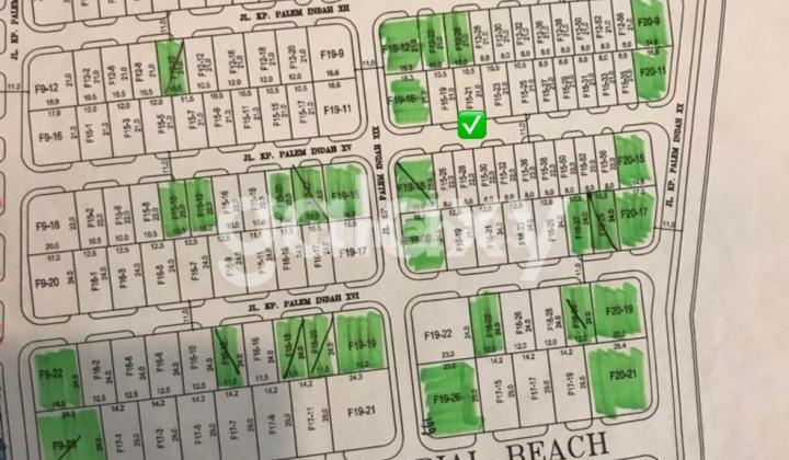 For sale: Kavling Imperial Beach, Palm Beach, Pakuwon city STRATEGIS, ROW JALAN 3 MOBIL Block F15 no 21 Luas Tanah 220 m²(10,5x21) Hadap Selatan Sertifikat PPJB Harga 15,25 Juta / Meter² nego sampai deal