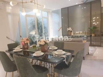 Dijual rumah furnish Grand Island Pakuwon City LT 10x16 (160) LB 203 2 lantai KT 4+1 KM 3+1 Hadap Selatan SHM Row 3 mobil Furnish Harga 5.2 M nego