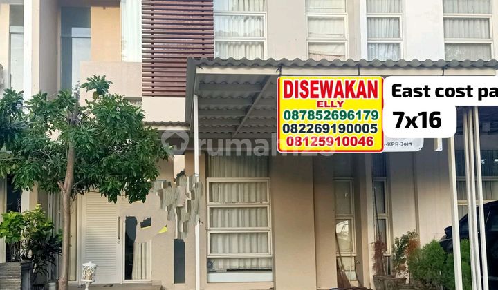 Disewakan murah!!!!!! Tinggal bawa koper Disewakan rumah 2lantai east cost park Pakuwon city Surabaya LT 7X16 lb 135 kT 3+1 KM 2+1 full furnished hadap barat depan taman harga sewa: 85 JT/th nego hubungi: Elly 08226919xxxx