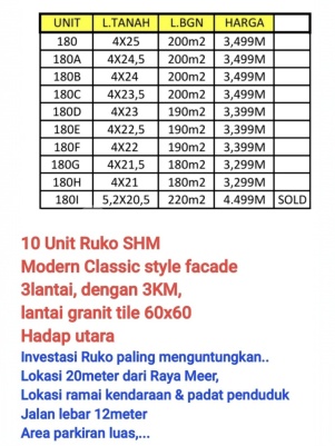 DIJUAL/DISEWAKAN RUKO RUNGKUT BARU GRESS 10 unit jejer (dimensi & harga berbeda2 - lihat di gambar) 3 LANTAI 3 KM Parkir Luas Lantai Granit 60x60 Hadap Utara 20 menit dr MERR SHM Jual start IDR 3,299.000.xxx Sewa IDR 90jt/th (min 2th) Please contact me: Melyana XMarks Tjandra Grande ******** #GunakanBrokerAREBI #IamTheOne