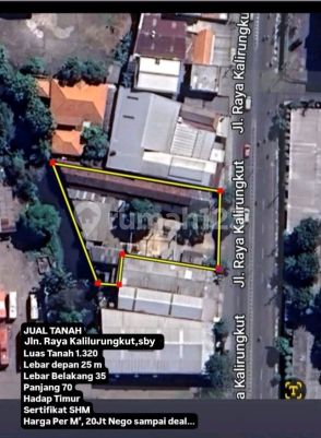 MS - JUAL TANAH Lokasi Strategis✅???? Jln Raya Kalirungkut,sby Luas tanah 1.320 Lebar depan 25m Lebar belakang 35 Panjang 70 Hadap timur Sertifikat SHM Harga 20jt/meter (nego sampai deal)✅