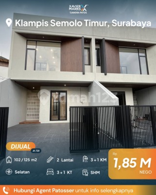 Di Jual Rumah Baru Lokasi Strategis Kanso House 2 Unit - Lokasi Klampis Semolo Timur - One gate - 5 Menit Ke Raya MERR, Galaxy Mall, ITS - Belakang Hokky Supermarket MERR LT : 102 m² ( 6x17 ) LB : 125 m² KT : 3+1 KM : 3+1 (2 Kamar mandi dalam) Jalur Weater Heater Ready Pompa Ready Inner Garden Hadap : Selatan Listrik 2200 watt SHM + IMB ROW jln 2 mbl Harga 1.850 M Hubungi : Jenni_0822xxxxxxxx XMarks Patos PAKUWON CITY MALL Surabaya Timur dekat Jalan Raya MERR, Rungkut, Kenjeran, Arif Rahman Hakim, Kertajaya, Dharmahusada, Kalijudan, Manyar, Rumah Sakit Premier, RS Haji, RS Unair, RS Mitra Keluarga, RS Gotong Royong, Galaxy Mall, Pakuwon City Mall, Transmart Rungkut, Kampus ITS, UNAIR, Sekolah Kristen Petra, Sekolah Gloria Galaxy, Pasar Keputran Timur, Jembatan Kenjeran, Taman Surabaya, Harmoni Keputih