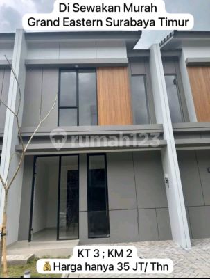 Disewakan Rumah baru Di Grand Eastern Surabaya Timur 2 lantai Dimensi 5 x 11 Lt 55 m2 Utara PDAM PLN 3500 KT 3 KM 2 Harga Sewa: 35 jt / th sari