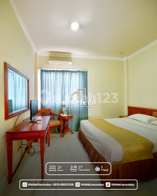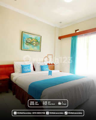 JUAL HOTEL DI SURABAYA!!! ▪︎ AC, Pemanas Air, TV LCD, TV Kabel, Internet, Telepon, Perabotan lengkap dari Jepara: Lemari pakaian, tempat tidur tersedia single dan double serta nachas, lampu meja, rak untuk TV LCD 29 - 32 inci. - Kamar mandi dilengkapi shower, wastafel, closet. - Terdapat Lobby yang juga berfungsi sebagai tempat sarapan yang berdekatan dengan meja resepsionis dan bersebelahan dengan ruang kantor/admin yang juga memiliki TV LED. - Sistem telepon PABX (hunting) dengan 3 nomor telepon plus fax. - Terdapat area dapur, ruang operator, genset 60.000kva. - Dilengkapi dengan toren di atas dan bak penampungan air bawah tanah (cor). - Area parkir di depan hotel, pos keamanan, serta ada dua pintu masuk (lobby utama dan pintu belakang untuk karyawan). - Perlengkapan hotel (handuk, sabun, sampo, sikat gigi/ perlengkapan standar hotel). - Ruang rapat dengan kapasitas 20 orang. - Luas tanah 526 M2, luas bangunan yang tertera 785 M2. Bangunan berlantai 3. --> Lantai 3 memiliki 8 kamar. --> Lantai 2 memiliki 11 kamar. --> Lantai 1 memiliki 8 kamar.
