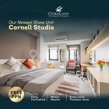 FREE PPN DTP 50% FREE SERVICE CHARGE 5THN APARTEMEN DENVER & CORNELL SELANGKAH KE UNIVERSITAS CIPUTRA Harga Studio Cornell. Luas gross : 27,2m2 Harga Cash lt 08: 536,000,000. Dipotong subsidi ppn 50%. Jadi cukup Bayar Rp 511,423,424,- Pembayaran tandajadi : 10jt. Bonus : AC, Water Heater. Dan furnish standart ( tempat tidur, Lemari baju. Meja. Lemari kitchen) More info: 0878xxxxxxxx