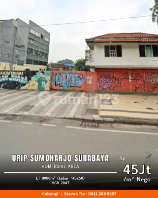Komersial Pusat Kota Urip Sumoharjo Dekat Raya Darmo, dr Soetomo LT: 8000 m² (Lebar 45+/- X 150 Mtr) HGB 2047 Harga: 45jt/m nego Best Deal STEVEN TIO WINMAX Wa.me/6281xxxxxxxx Visit us ******** IG. @propertybagus.sby