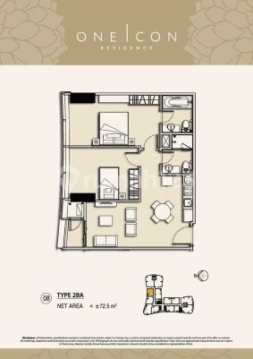 Di Sewakan Apartemen One Icon Spesifikasi : - Luas : 74m² - KT / KM : 2 / 1 - Lantai 07 - View City - Full Furnished Harga 165jt/tahun