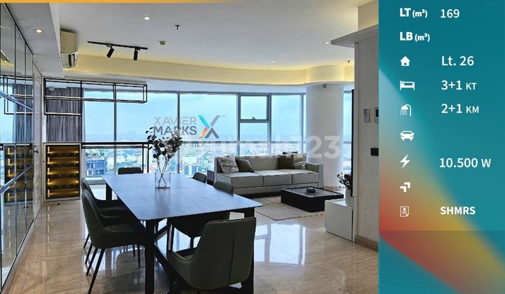 Spesifikasi : Lantai 26 Luas 169 m² Kamar tidur 3+1 Kamar mandi 2+1 Listrik 10.500 Watt Air PDAM Dapur bersih dan kotor Lantai full marmer Sound by Bose Kamar mandi marmer Private lift Ruang service area / laundry Full furnished + interior AC 5 + water heater SHMRS Harga 8 M nego Hubungi : JUAN HOGIANTO 0859xxxxxxxx XAVIER MARKS PREMIER JL. SUNANDAR PRIYO SUDARMO NO. 31F, MALANG