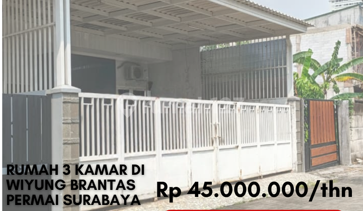 Disewakan 45 Juta Rumah Siap Huni Terawat di Wiyung Brantas Permai Surabaya Spesifikasi : Luas Tanah 7 x 21 m Luas Bangunan 7 x 21 m 3+1 Kamar Tidur 4 Kamar Mandi Gudang Listrik 3.200W Air PDAM + tandon Hadap utara Keunggulan : 3 AC Water heater Lemari pakaian & meja rias Kitchen set Meja makan Sanyo 2 unit (atas bawah) Tandon 2 unit (atas bawah) Harga sewa 45jt/thn (min. 2 thn) Lokasi Rumah Sangat Strategis Karena Hanya Selangkah ke : - Pakuwon Mall, Lenmarc Mall, Royal Square - Superindo, Mitra 10, MCD, Pizza Hut, Burger King - Rumah sakit National Hospital, Rumah sakit Wiyung - Dengan dekat sekolah, perkantoran dan pasar Mau survey hubungi : Nur Pro EdGe
