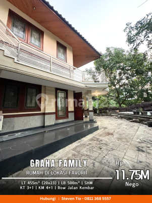Rumah di lokasi Favorit Graha Family, Sby Barat Row Jalan Kembar Langka LT: 455 m² (20x23) LB: 500 m² KT: 3+1 (semua kamar mandi dalam) KM: 4+1 | SHM Harga Rp 11.75 M nego Rent: 240jt/thn nego Best Deal