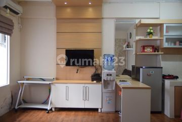 2 br jadi 1 digabung full. Lantai full parkit. Furnished Lantai 8 AC, TV, dispenser, water heater. Kondisi sangat terawat. Nego sampai deal.