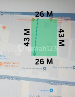 Dijual Tanah Dibawah Pasaran Jalan Raya Kembar Manukan ukuran 26x43 petok d harga 6jt/m2
