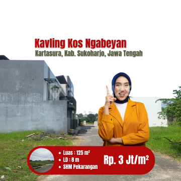 Kavling Strategis Ngabeyan, Kartasura. Cocok Hunian Premium Pun Kost Ekslusif di Kawasan Perumahan. Spesifikasi : - Tersedia 10 Unit Kavling - Luas : 121 s.d 170 m2 - Lebar Depan : 8 m - SHM Pekarangan - Row Jalan 5 Meter - Mobil Simpangan Info Sekitar Lokasi: - 600m RS Karima Utama - 700m SMPN 1 Kartasura - 750m RS Surgery Karima Utama - 800m Polsek Kartasura - 800m Tugu Kartasura