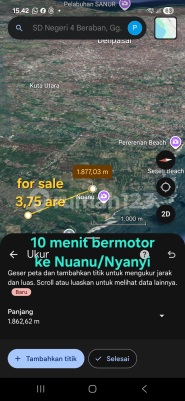 TANAH DIJUAL ( FREEHOLD) 1250 meters dari TANAH LOT . Land area YELLOW ZONE 3,75 are = 375 m² (Sqm) Land Size : 12 x 31,25 m 150 meter ke Main road ( jln Raya Tanah Lot ) 5 menit bermotor ke Tanah Lot 10 menit bermotor ke Nuanu/Pantai Nyanyi 15 menit ke Pantai Kedungu . Harga/Price : Rp 600 juta/are ( Nego ) IDR 600 million/are ( Negotiable ) Code : G pk