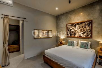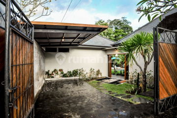 Purnama Forest Edge Villa adalah villa 3 kamar tidur di atas lahan 1.500 m² (15 are) di jalur Pererenan - Tumbak Bayuh / Cepaka, menghadap deretan pepohonan dewasa dan green-belt hijau. Suasananya seperti retreat privat di tepi hutan namun tetap mudah menjangkau Pererenan dan area Canggu untuk café, gym, groceries, sekolah, dan pantai. Bangunan utama terasa hangat dan fungsional: plafon kayu tinggi, lantai beton poles, dan bukaan kaca lebar yang menghubungkan living, dining, dan dapur ke taman. Ruang tamu dapat ditutup sepenuhnya dan siap AC, dengan meja makan panjang dan breakfast bar kayu sebagai pusat area berkumpul yang menghadap langsung ke rumput dan kolam. Di luar terdapat kolam renang 12 × 4 m dengan dek kayu, sun lounger, dan payung, menghadap area hijau tepi hutan dengan pagar kaca. Di bagian taman yang lebih rendah ada kolam koi dengan batuan dan patung air mancur yang menambah rasa tenang, terutama menjelang sore. Tiga kamar tidur en-suite menggunakan material sederhana yang solid dan pencahayaan alami yang baik. Kamar utama memiliki kamar mandi bergaya spa dengan bathtub batu yang menghadap pepohonan, vanity kayu, dan pencahayaan lembut. Detail singkat: * 3 kamar tidur / 3 kamar mandi (semua en-suite) * Luas tanah 1.500 m² (15 are), luas bangunan ±220 m² * Sumur bor pribadi, listrik PLN 7.700 VA * View hijau tepi hutan dengan privasi * Lokasi Cepaka / Tumbak Bayuh, ±10-15 menit ke Pantai Pererenan dan ±15-20 menit ke Berawa / Canggu Cocok bagi penyewa yang mencari rumah tenang dengan buffer hijau yang nyata namun tetap ingin kenyamanan tropis yang praktis: living tertutup, plafon tinggi, finishing tahan iklim, layout full en-suite, dan kolam renang panjang yang menghadap pepohonan.