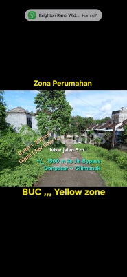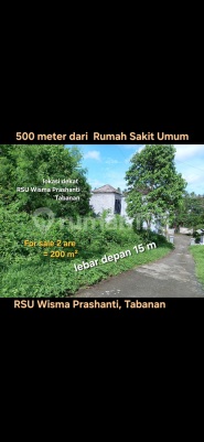 Tanah Dijual di Tabanan , Bali . Luas : 2 are ( 200 m² ) Lebar depan 15 m Lebar akses jalan 5 meter Zona Perumahan Dekat RSU Wisma Prashanti . +/_ 1500 meter di Jalan Bypass Denpasar -- Gilimanuk . +/_ 1,5 jam ke Airport Ngurah Rai . Harga BUC : RP 300 juta/are IDR 300 million/are . Code : N pk