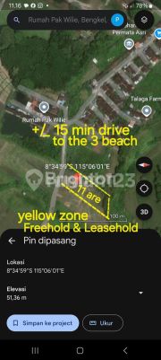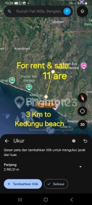 Tanah Disewa Tabanan LEASEHOLD (TANAH DIKONTRAKKAN ) di area Bengkel KEDUNGU . Tabanan , BALI . +/_ 15 minutes drive to 3 of beach : KEDUNGU Beach YEH GANGGA Beach & TANAH LOT 15 minutes drive to Tabanan city Land area : YELLOW ZONE 11 are = 1100 m² ( Sqm ) Sixe 15 x 79 m RENT PRICE : IDR 10 million/are/year ( NEGOTIABLE ) Rent Period : 25 - 30 years + Extend Code : pe IK
