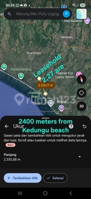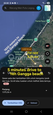 LEASEHOLD LAND ( Dikontrakkan) in Tabanan . BALI . 1600 meters from YEH GANGGA BEACH , 5 minutes drive to Yeh Gangga Beach 2400 meters from KEDUNGU BEACH 15 minutes drive TO KEDUNGU BEACH Land area : Yellow zone 2,27 are = 227 m² ( Sqm ) Front width 11 meters Land size : 11 x 20,6 meters Rent price : IDR 12 million/are/years ( Negotiable ) Harga : Rp 12 juta/are/tahun ( Nego tipis ) Rent period : 25 - 30 years + Extension option . Code : Cp