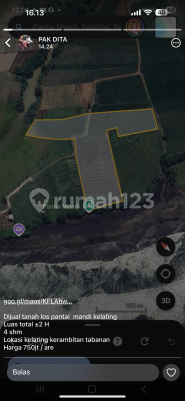 Jual tanah premium los pantai mandi luas 200 are harga 750 jt per are shm pbb zona pink jalan mobil view laut sawah dko Dita