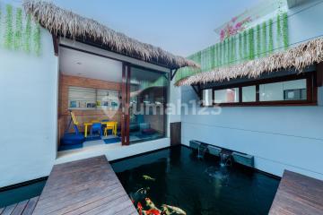 PROPERTY DETAILS Land size: 1500 m2 (15 are) Building size: 600 m2 (6 are) VILLA FEATURES 5 bedrooms 5 plus 2 bathrooms Study room or kids room Private swimming pool 16 x 5 Living room 25 x 10 Kitchen Dining area Parking area approximately 5 are Massage room Rooftop deck Yoga shala Tatami dining room LEASE PRICE OPTIONS IDR 1.8M per year, open price, including staff IDR 12M for 10 years, open price, excluding staff FREEHOLD PRICE IDR 22M