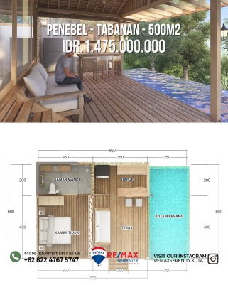 Location: Penebel Tabanan Bali Type 1 BEDROOM POOL Full Furnished - Luas tanah: 500 M2 - Luas bangunan: 42 M2 - 1 Bathroom - Full concrete flooring - Bangunan full kayu jati - Garden & terrance - Pool Price: 1,475 M