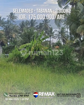 Spesifikasi: - Luas 2300m2/23 are - Legalitas SHM - Pinggir Jalan Utama DPS - Gilimanuk - Zona perdagangan jasa - View laut gunung - Cocok utk resto, cafe, gudang dll Harga per are 175jt. Jual Global 4.025M