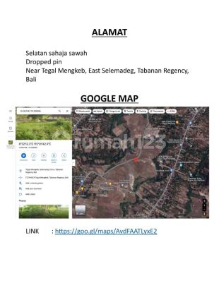 Tanah Kawasan Pariwisata Soka, Luas Strategis Dkt Pantai, Tabanan 2210xxxxNO.270) (@Bagus) Detail Property Dijual : Tanah Peruntukan Villa Kawasan Pariwisata Soka Provinsi : Bali Kota : Tabanan Area : Soka, Tegalmengkeb, Selemadeg Timur Lebar Jalan : 6 meter Hadap : Barat Luas Tanah : 2.700 m² Legalitas : SHM Zona : ITR Kawasan Pariwisata Soka Akses Jalan : Mudah, bisa dilalui mobil Lingkungan : Sekitar kawasan villa dan wisata Cocok Untuk : Villa pribadi atau kavling investasi Keutamaan - Lokasi strategis di kawasan wisata Soka - 5-10 menit ke Pantai Kelecung, Antap, dan Pasut - 15 menit ke Balian Beach dan Bajera - Akses dekat ke jalan utama Denpasar-Gilimanuk Fasilitas - Akses jalan lebar - Lingkungan wisata dan villa - Dekat pantai - Potensi tinggi untuk investasi pariwisata Harga Rp 1.500.000 / m2 Harga global Rp 4.050.000.xxx Nego halus