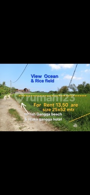 LEASEHOLD LAND ( Tanah Dikontrakkan ) at YEH GANGGA BEACH near WAKA Gangga HOTEL , Tabanan , BALI . Land Area PINK ZONE 13,50 are = 1350 m² (Sqm) Size 25x52m View Mountain View Ocean View Rice field 15 mimutes drive to Kedungu beach 900 meters to get Ocean view Price : IDR 12,5 million/are/year Rp 12,5 juta/are/tahun Rent Period : 25 - 30 years + Extension option Code : C aP
