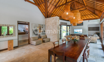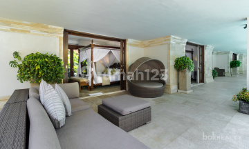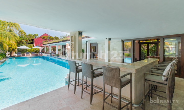 Price : USD 2,550,000 We are excited to exclusively present this unique, one-of-a-kind Freehold luxury villa, nestled within the iconic Tanah Lot Temple in Bali. This remarkable property has been cherished by the same family over 20 years and is now available for sale for the very first time. A property such as this can never be repeated or offered again. Nestled on an expansive 2,250 sqm, this grand villa masterfully blends traditional and modern design aesthetics. Fully furnished with 5 spacious bedrooms, it offers the utmost comfort and style. Located right on the beachfront, the property boasts exceptional amenities, including an art gallery, an entertainment room with a pool table, a spa area, and a private pool for leisurely days under the sun. With stunning sea views and situated in the culturally rich area of Tanah Lot, this villa is a true gem, just moments from the beach and a short drive from essential amenities. Offering freehold status, it presents an ideal investment opportunity or holiday rental business venture, making it the perfect choice for those seeking both luxury and substantial returns. Two separate buildings comprise a main building with bedrooms, living and dining areas, and an art gallery featuring an entertainment room and spa area. The enclosed living area features a high vaulted ceiling, a stylish sofa set, and bifold doors that allow abundant natural light and excellent airflow, offering beautiful views of the pool and garden. Choose between two dining spots: an enclosed area or a semi-outdoor space for alfresco dining. The enclosed dining area seats up to 10 guests, while the outdoor space accommodates 6, featuring ornately carved wall details. The kitchen boasts a stylish bar-like design with breakfast stools by the pool. All spacious bedrooms feature elegant colonial-style timber design, face the pool, and are airy with luxurious ensuite bathrooms.