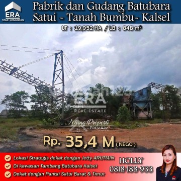 LELANG PABRIK DAN GUDANG PENGOLAHAN BATU BARA SATUI KALIMANTAN SELATAN Alamat: Jl. Pelindo, Satui Barat, Kec. Satui, Tanah Bumbu, Kalimantan Selatan Detail Properti: - Luas Tanah: 19,9782 HA - Luas Bangunan: 848 m² Keunggulan Lokasi: Dekat ke Jetty, Sungai dan Pelabuhan utk kemudahan transportasi Di lokasi yang strategis dan mudah dijangkau transportasi darat dan laut Harga: Rp. 35,4 Miliar (Harga Nego) Harga SUDAH Termasuk biaya Pengosongan dan Balik Nama. (Harga di atas belum termasuk BPHTB 5%, biaya lelang 2%, Pajak Pemerintah 1%, dan PBB jika ada) **Kenapa Memilih Kami?** Dengan pengalaman 12 tahun di bidang lelang, kami menyediakan solusi satu atap untuk semua transaksi properti Anda. Proses yang jelas dan bersih sehingga Anda bisa tenang hingga serah terima. Hubungi Kami untuk Info Lebih Lanjut: - Holly: 081818xxxx - Ferry: 0816116xxxx Jangan lewatkan kesempatan ini untuk berinvestasi Pabrik dan Gudang di Kalimantan Selatan #LelangProperti #PropertiIndonesia #InvestasiProperti #PropertyInvestment #RumahDijual #InvestmentOpportunity #AgentProperti #LebihBaiKandariperasi #KemangProperty #JakartaRealEstate #RumahJakarta #JualBeliProperti #EraIndonesia #AgenPropertiTerpercaya #Investasi #RealEstateAuction #KalimantanSelatan #ptba #coalmine #tambangbatubara