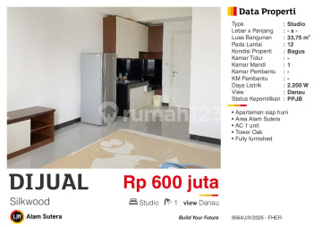 Apartemen 12 lantai di Alam Sutera, Tangerang. Dijual di wilayah yang nyaman. Dengan rinciannya adalah sebagai berikut: - Kamar Tidur: 1 - Kamar Mandi: 1 - Sertifikat: PPJB - Daya Listrik: 2200 W - Kondisi Perabotan: Furnished Sudah lengkap dengan fasilitas: - Wastafel. - Kitchen Set. - AC. - Kompor. - Kulkas. - Kolam Renang. - Taman. - Kolam Renang. Dan properti ini juga terdepan karena: - Siap Huni. - Bebas Banjir. - Dekat Akses Transjakarta. - Dekat Pusat Perbelanjaan. - Dekat Sekolah Internasional. - Dekat Universitas. - Dekat Fasilitas Kesehatan. - Lokasi dipusat kota. - City View. - Cocok Untuk Investasi. - Properti Bisa Nego. - Lokasi Strategis. Lokasi apartemen ini mudah dijangkau, hanya selangkah menuju berbagai fasilitas utama dan menarik. Dengan Rp. 600.000.xxx, anda bisa langsung dapatkan apartemen eksklusif di daerah Alam Sutera ini.