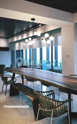 Size: 231 m2 Bedroom: 2 Bathroom: 2 Study Room: 1 Maid Room: 1 Maid Bathroom: 1 Floor: 38th City View Condition: Private lift (Parking & Entrance elevator for direct to unit) Dedicated parking 2 slot parking (VIP Penthouse Parking Space) High ceiling 3,2 m (Furnished with Wood Panel Ceiling) Fully furnished with branded brand (4 Meter Dining Table Casaka Wood & Living, ALVIN T all Dining Chairs, Abror & Troy Sofas, Solid High Quality Teak Wood Cabinets, Racks & Bed Set from Ethnicrafts Furniture) 2 Sets Brand New 65” HDTV Samsung + 1 Brand New Referigerators All King Koil Bed Completed with Onna Blind for all Windows AC Ducting VRF Samsung, TOTO Wardrobe & Pantry, TOTO Kitchen Set, Sanitary VnB & Grohe Harga: 9.5M nego wdefgs