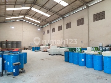 Bangunan kantor 5 X 19.5 (3 lantai) Gudang A 13 X 30 m Gudang B 17 X 33 m Listrik 16.500w. Pos security 6 titik CCTV. disewa 700 juta/th minimal sewa 2tahun