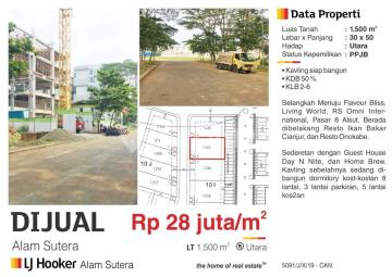 Dijual Kavling Commersil 150m2 ASTC Alam Sutera Tangerang Dekat Kopi Nako, Vilo Gelato, Home Brew dst Lokasi Dekat mall LW, Flavour Bliss , Pasar 8