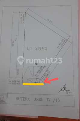 Dijual Kavling Sutera Asri, Alam Sutera Luas 517m² Lebar muka 10m Utara Badan, ngantong PPJB hrg 12jt/m nepis Luck