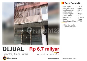 Ruko di Alam Sutera, Tangerang. For sale di wilayah yang nyaman. Dengan rinciannya adalah sebagai berikut: - Kamar Mandi: 3 - Sertifikat: PPJB - Daya Listrik: 16500 W - Kondisi Perabotan: Unfurnished Sudah lengkap dengan fasilitas: - Jalur Telepon. Dan properti ini juga pilihan tepat karena: - Bisa KPR. - Siap Huni. - Bebas Banjir. - Dekat Akses Transjakarta. - Dekat Pusat Perbelanjaan. - Dekat Sekolah Internasional. - Dekat Fasilitas Kesehatan. - Dekat Universitas. - Dekat Akses Tol. - Lokasi dipusat kota. - City View. - Cocok Untuk Investasi. - Properti Bisa Nego. - Lokasi Strategis. Lokasi ruko berikut terjangkau, hanya selangkah menuju berbagai fasilitas utama dan menarik. Dengan Rp. 6.700.000.xxx, anda dapat langsung dapatkan ruko eksklusif di daerah Alam Sutera ini.