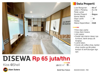 Ruang usaha di Alam Sutera. Dapatkan ruang usaha yang asri ini, disewakan menghadirkan lingkungan fasilitas yang lengkap, cocok untuk Anda yang menginginkan hunian strategis. Spesifikasi Utama Properti: - Kamar Mandi: 2 - Sertifikat: HGB - Hak Guna Bangunan - Daya Listrik: 3500 W - Kondisi Perabotan: Furnished Fitur unggulan: - Full Furnished. - Siap Huni. - Bebas Banjir. - Dekat Akses Transjakarta. - Dekat Pusat Perbelanjaan. - Dekat Sekolah Internasional. - Dekat Fasilitas Kesehatan. - Lokasi dipusat kota. - City View. - Properti Bisa Nego. - Lokasi Strategis. Berlokasi di Alam Sutera, ruang usaha ini memberikan kemudahan akses ke berbagai fasilitas menarik. Dengan harga Rp. 5.416.667, anda bisa memiliki hunian premium yang sudah siap huni dan bersertifikat HGB - Hak Guna Bangunan. Manfaatkan kesempatan untuk menikmati pengalaman tinggal di kawasan Alam Sutera yang nyaman ini! Kontak segera untuk informasi lebih lanjut!