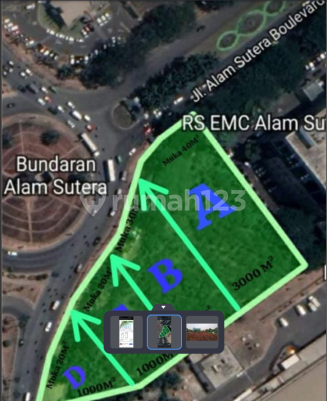DISEWAKAN KAVLING KOMERSIAL ALAM SUTERA SERPONG TANGERANG SELATAN HARGA MURAAAHHH Posisi di Jalan Boulevard Sebelah RS EMC Alam Sutera dan DEPAN Bunderan Jam Besar ALAM SUTERA Total Luas +-8.000M.2 Luas per Kavling . A-3,000m2, Lbr+-40m B-2,000m2, Lbr +-30m C-1,000m2 , Lbr +-20m D-1,000m2 , Lbr +-20m Cocok Buat : Lapangan Padel Showroom Restoran Mini Market dll.. Harga Rp600rb/meter/thn Hubungi Ade Nurul GP Alsut //eml