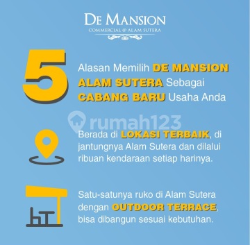 Jual Ruko baru alam sutera ready ada 13 gandeng LT.90 m2 LB. 180 m2 uk.5 x 18 m Harga Jual/unit Rp.4.745.300.xxx Include Ppn harga Tertera,harga cash keras Sistem Payment : bisa Tunai keras,Tunai Bertahap 18 X ,dan KPR Bank