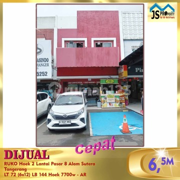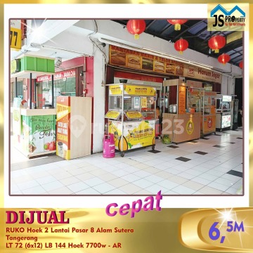 DIJUAL Cepat RUKO Hoek 2 Lantai Pasar 8 Alam Sutera Tangerang Luas Tanah 72 m2 Luas Bangunan 144 m2 Ukuran : 6x12 (2 lantai) Hoek Listrik 7.700 kwh SHGB on hand