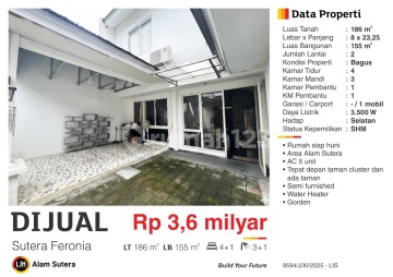 Rumah 2 lantai di Alam Sutera, Tangerang. Dijual rumah di wilayah yang tenang. Properti 2 lantai ini berada di lingkungan strategis. Kategorinya adalah sebagai berikut: - Kamar Tidur: 5 - Kamar Mandi: 4 - Sertifikat: SHM - Sertifikat Hak Milik - Kondisi Perabotan: Semi Furnished Tidak hanya itu, properti ini layak untuk anda dapatkan karena: - Bisa KPR. - Bebas Banjir. - Siap Huni. - Adem & Sejuk. - Lingkungan Tenang dan Damai. - Properti Bisa Nego. - Dijual Cepat Butuh Uang. Keberadaan rumah ini terjangkau, hanya selangkah menuju berbagai fasilitas utama dan menarik. Dengan Rp. 3.600.000.xxx, anda bisa langsung dapatkan rumah eksklusif di daerah Alam Sutera ini.