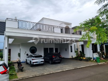 Sutera Sitara Alam Sutera View Taman Semi Furnished Mewah LT 350 m² (14x25) LB 215 m² 2 Lantai (bangunan tahun 2023) SERTIFIKAT HAK MILIK Hadap Utara 2+1 Kamar Tidur 3+1 Kamar Mandi LIFT BADMINTON COURT SWIMMING POOL Listrik 13.200 watt Balkon luas FURNISHED Semua Furnished yang menempel: Kitchen set Walk-in Closed di Setiap Kamar AC terpasang di Setiap Ruangan Bathup Pompa dorong grundfos Water Heater Ariston, Dll