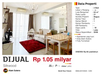 Apartemen Silkwood di Alam Sutera. Spesifikasi Utama Properti: - Kamar Tidur: 2 - Kamar Mandi: 1 - Sertifikat Hak Milik - Fully Furnished - Dekat Universitas. - Dekat Mall Alam Sutera Yuk DM segera untuk informasi lebih lanjut! -CAN-