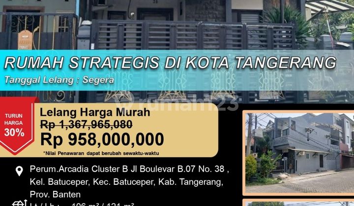 Kesempatan terbatas buat Anda dapatkan rumah nyaman dengan return investasi tinggi di Batu Ceper, Tangerang. Rumah ini menawarkan lokasi yang strategis serta memiliki nilai tepat yang siap untuk segera Anda miliki, utamanya bagi Anda yang mencari hunian di lokasi yang dekat dengan fasilitas umum. Kondisi properti ini bagus dan memiliki desain indah yang menambah daya tarik dan estetika properti ini. Rumah ini berada di wilayah yang mudah dijangkau. Detail Properti ini adalah: - Kamar Tidur: 3 - Kamar Mandi: 2 - Sertifikat: SHM - Sertifikat Hak Milik - Arah Bangunan: Menghadap Utara - Kondisi Perabotan: Unfurnished Tersedia berbagai fasilitas lengkap, seperti: - Akses Parkir. - Taman. Tidak hanya itu, namun properti ini juga memiliki keunggulan sebagai berikut: - Dekat Akses Tol. - Dekat Akses Bandara. - Dekat Pusat Perbelanjaan. - Aset Lelang. Lokasi Strategis terletak di Batu Ceper, properti ini memudahkan akses Anda ke fasilitas-fasilitas utama dan unggulan. Harga yang sangat kompetitif yaitu, Rp. 958.000.xxx, rumah ini siap menjadi milik Anda! Nikmati segala kemudahan dan berbagai keunggulan menarik saat properti berkualitas ini milik Anda.